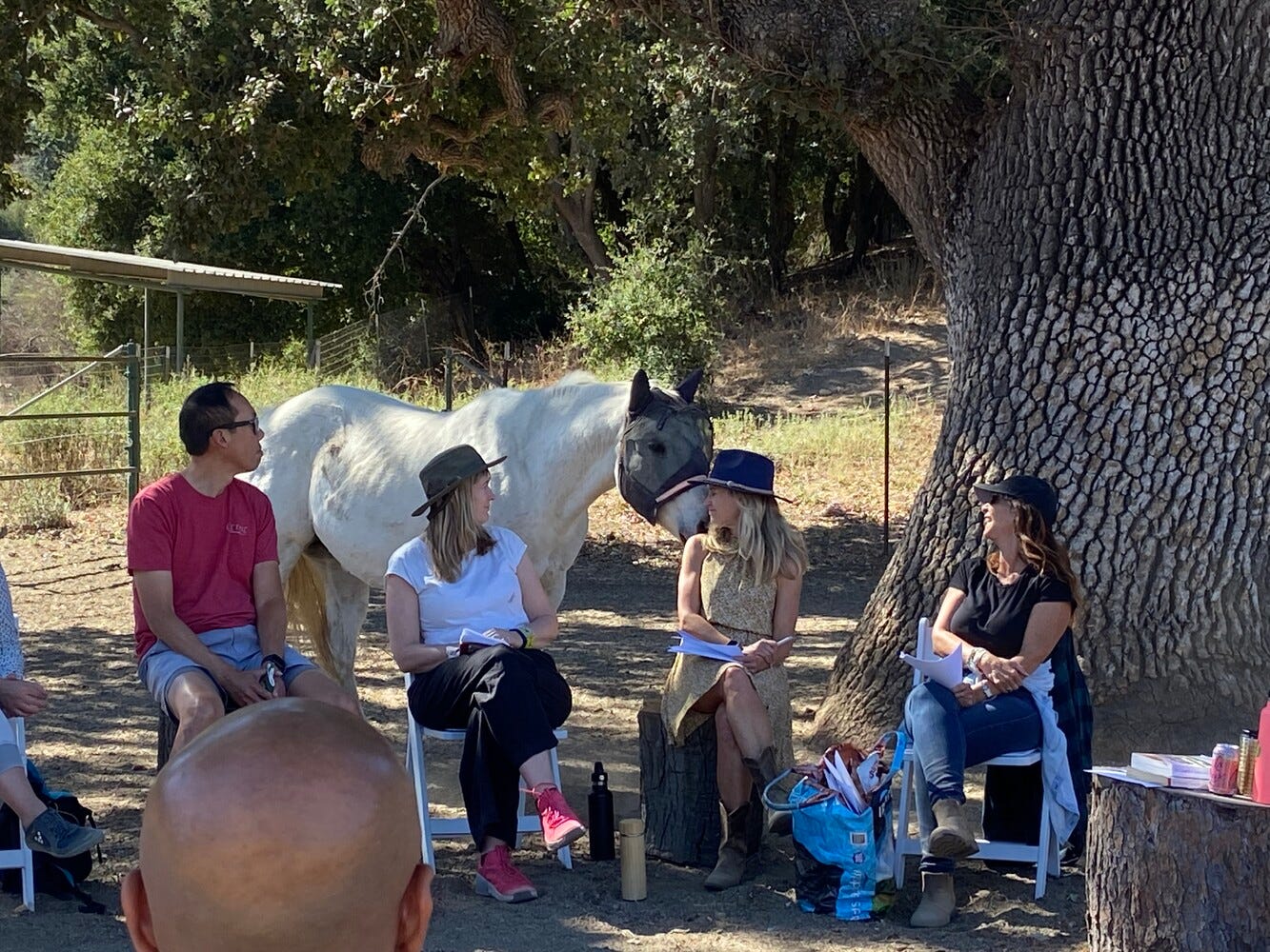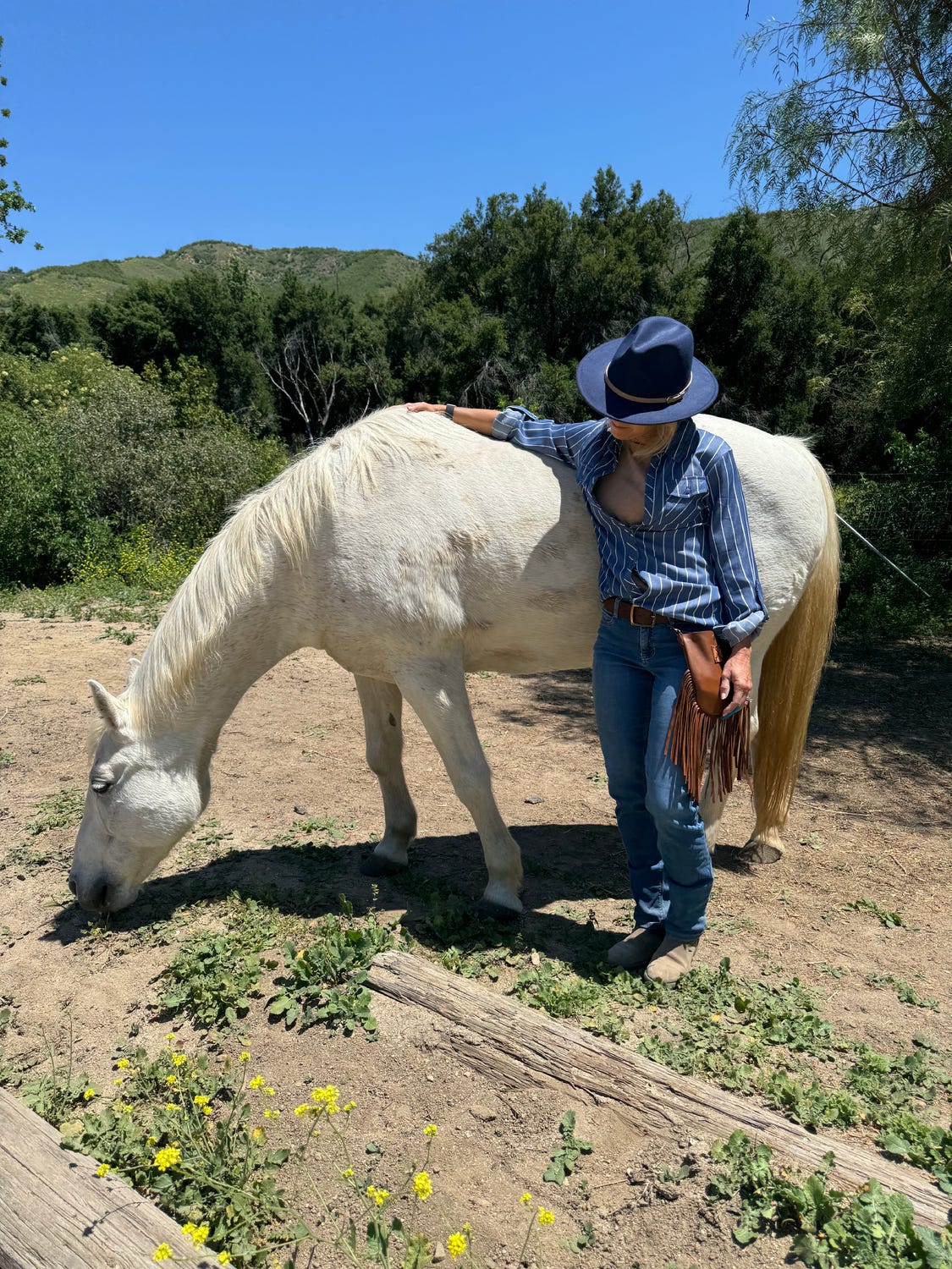 This dear friend’s ranch is extraordinary, a sanctuary where herds of horses live as freely as they might in the wild—an almost unimaginable reality in LA. Many of these horses were rescued from kill lots, labeled “unsafe,” and discarded. At the ranch, they’ve found purpose, not only in healing themselves but in helping humans learn cooperative relationships. These horses get to be just that—horses—not broken into submission but living in alignment with their true nature.
